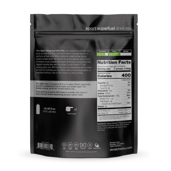 We discovered the answer in a better carbohydrate (with a funny name) that digests steadily, like real food does: Cluster Dextrin™. One serving of Superfuel gives you 400 calories, powered by Cluster Dextrin™, plus the electrolytes lost in sweat to fuel and hydrate your biggest days.