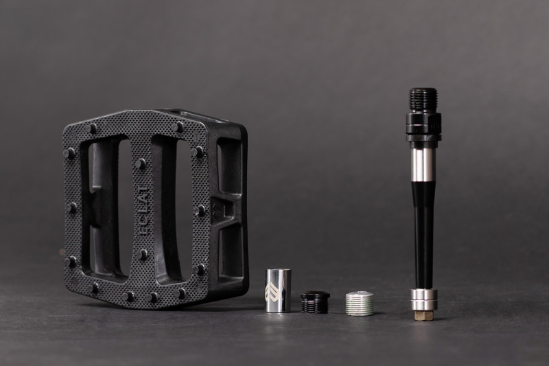 The end result is a pedal body that is not only thinner in profile than any of our other pedals, but also completely flat, without any kind of bump or raised section. Combined with a larger overall surface area, a dual concave design, and a micro-knurled surface – this makes for one of our best feeling and most supportive pedals to date. A larger pedal gives the foot more support, especially on tricks where your feet come off (i.e. tailwhips) and also on hard landings since the load is more spread out and evenly distributed.