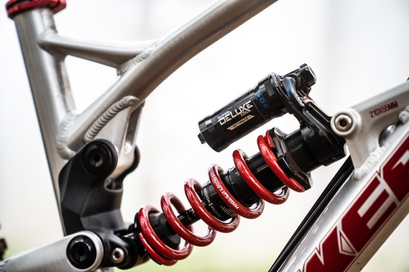 - Shock: Rockshox Super Deluxe Ultimate RCT coil, ml1 custom tune, 210x55mm (medium=400lbs spring/large=450lbs spring/xl=500lbs spring red coil spring)
