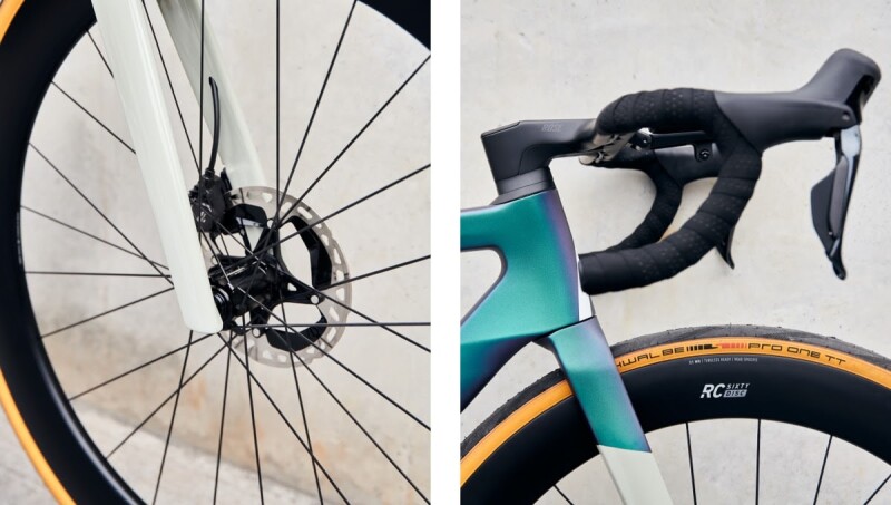 The new ROSE One-Piece cockpit, the RC Sixty wheels and the Aero D-Shape seatpost combine lightweight construction, aerodynamics and ergonomics. They blend in perfectly with the new racing design.