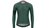 Let's start with this neat green jersey with black stripes on the right sleeve and camouflage pattern on the rear pocket area offering three classic rear pockets plus one zippered pouch. The pockets have reinforced seams and finishes, with plenty of room to carry all your essentials. Green is a very practical color when it comes to mud and dust on the roads, so that's one less thing to worry about. This long sleeve jersey can be worn with just a thermal base layer or over the short sleeve jersey hereunder.