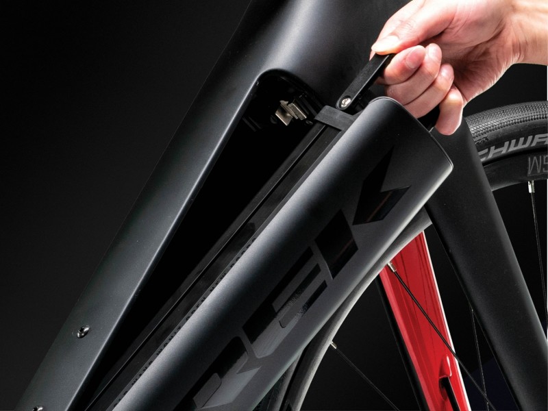 - Trek's Removable Integrated Battery (RIB) system looks great and is super user-friendly: it fully hides the battery in the frame and makes it easy to remove the battery without tools