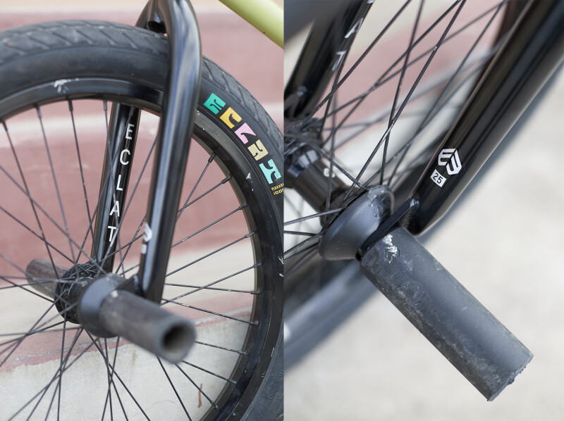 Éclat (Germany) - Press Release: The team is on the road right now in Vegas working on a new éclat video. We took the chance to sit down with Ty Morrow and get a closer look at his bike. Ty always has a dialled rig and this one is no exception. Ty is riding a full éclat kit including his signature 10″ Morrow Bar and Morrow Tires with all the trimmings.