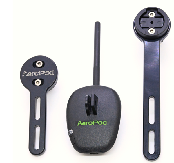 This GoPro-compatible mount is made of machined aluminum, providing a very stiff and secure mounting pad for your AeroPod or PowerPod, and also attaching your Garmin computer directly above the AeroPod/PowerPod.